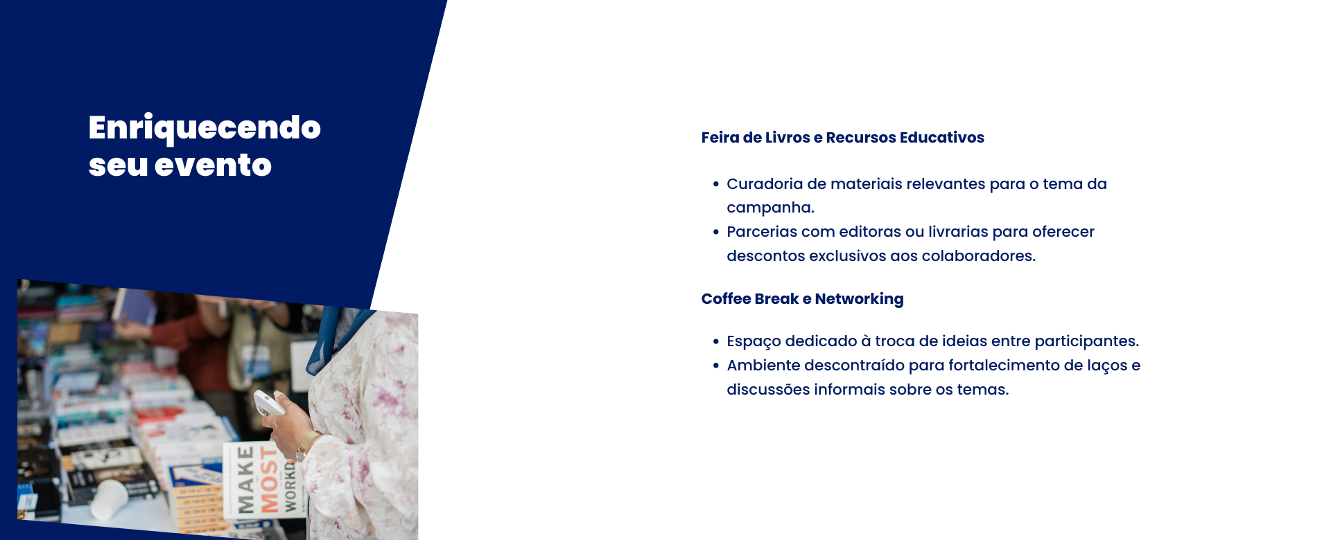 O que: Palestras, Treinamentos, Cursos, Consultoria, Dinamização do PPP (Projeto Político Pedagógico), Ações Complementares, Orientação para Elaboração do Plano Municipal de Educação e Projeto Político Pedagógico, Assessoria em Gestão Escolar